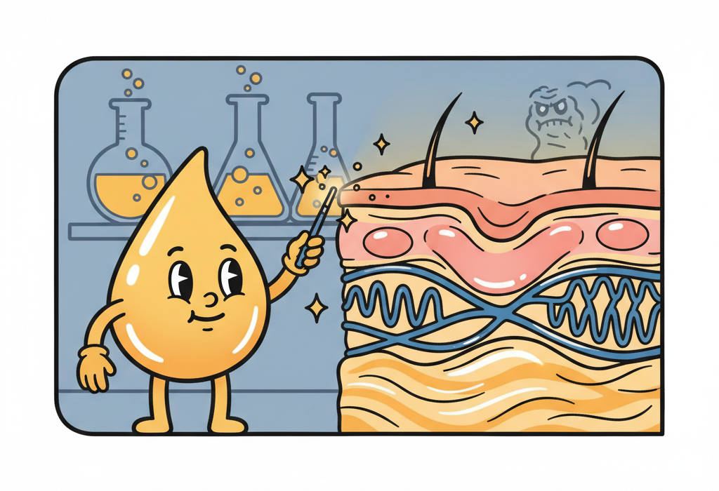 1. In the epidermis (outer skin layer): It stimulates skin cell growth and speeds up cell turnover. This thickens the epidermis, which tends to thin as we age. It also helps the skin shed old, damaged cells faster.